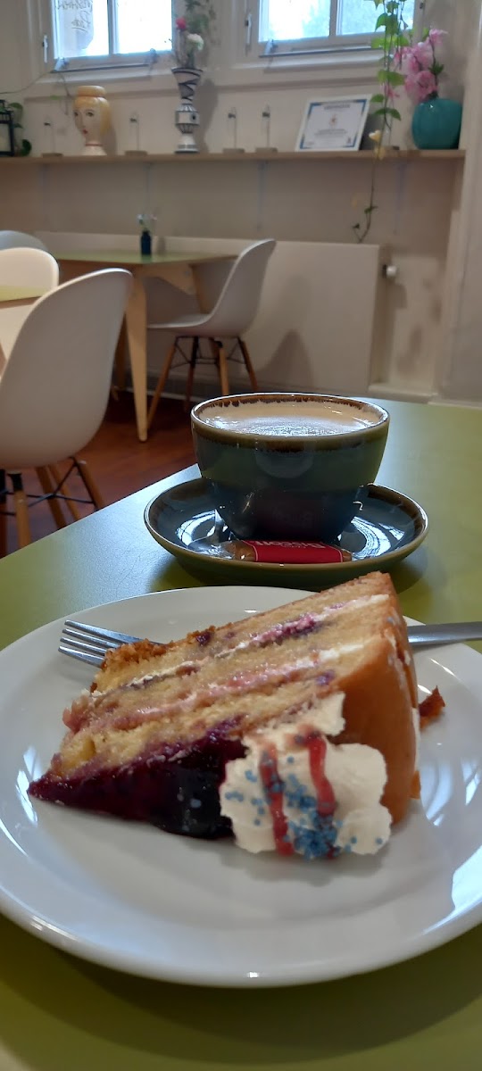 This cafe fits well into everyday routines — whether you’re popping by for a quick tea and scone, grabbing a refreshing salad, or treating yourself to one of the homemade cakes like the Victoria Sponge or daily Blueberry Cake. The coffee here is solid, complementing the assortment of sweets and light bites you might look for in an unhurried moment.