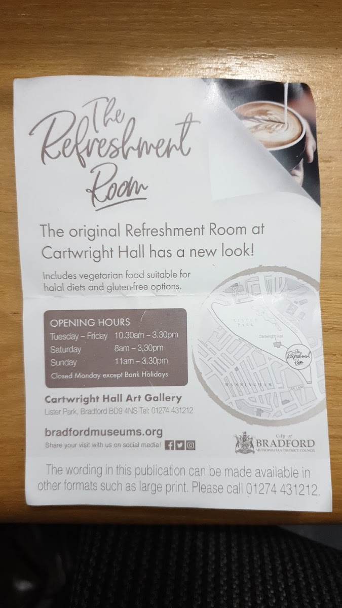 The menu at Refreshment Room cafe offers a variety of food and drink options suitable for coffee breaks, light meals, and casual dining. Visitors can expect a selection of hot and cold beverages including coffee and tea. The food offerings include light bites such as sandwiches, toasties, and fresh salads, as well as homemade cakes like Victoria Sponge Cake, Blueberry Cake of the Day, and Coffee Cake. Additionally, there are options such as soups and samosas available.